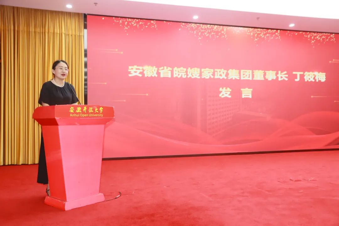 杜愛玉在致辭中表示,安徽開放大學是一所應用現代信息技術開展學歷教育、非學歷繼續教育和服務全民終身學習的新型大學。本次和安徽省婦聯開展戰略合作,將在省婦聯指導下和皖嫂集團合作培養家政服務人才,為安徽新質生產力發展提供更多新型勞動者。