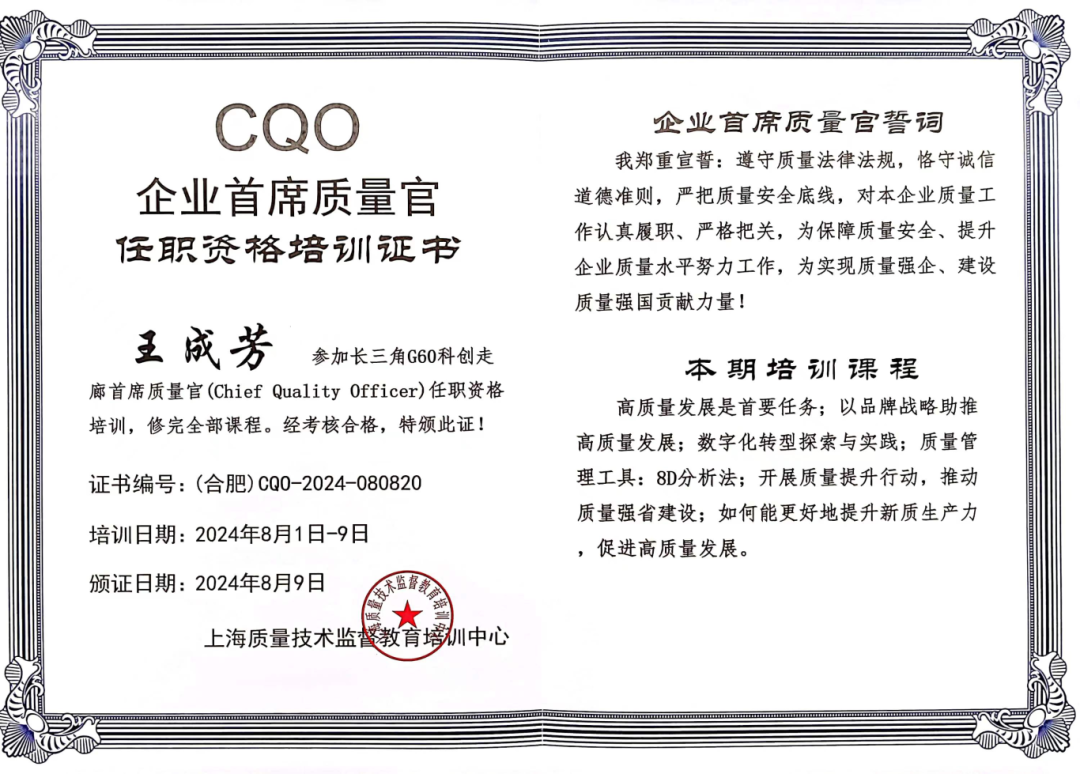 研修班的成功舉辦,加強了長三角地區質量教育資源共享和質量人才隊伍建設,推進了企業首席質量官制度的實施和跨地域互認互通。未來,皖嫂家政將持續營造“樹標桿、學標桿、超標桿”的質量氛圍,把質量作為核心動力,不斷創新,提升家政服務新質生產力,促進家政服務高質量發展。
