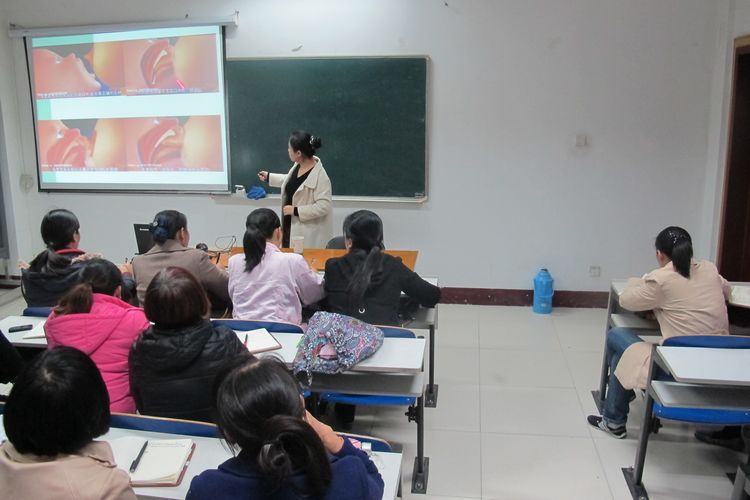 授課講師在為學員講解相關理論知識及按摩技巧