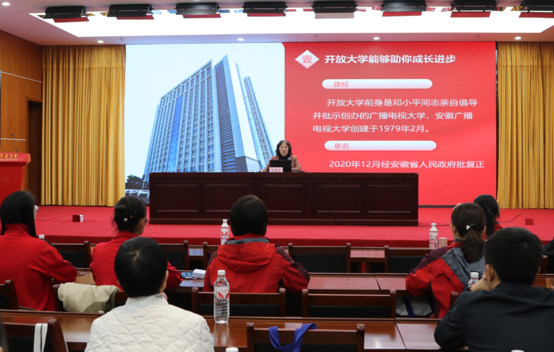 在金秋送爽、丹桂飄香的美好時節,安徽開放大學開放教育學院聯合安徽工匠學院,隆重舉行了2024年秋季新生開學典禮暨“開學第一課”活動。安徽開放大學黨委書記、校長杜愛玉出席本次活動,典禮由安徽開放大學學院直屬黨支部書記、院長馬寧主持,“皖美”巾幗家政學院新生代表受邀參加。
