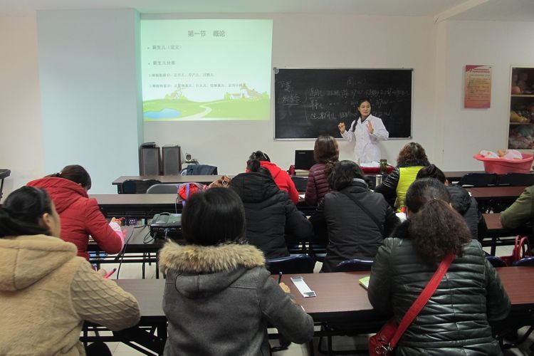省婦幼保健院專業(yè)醫(yī)師在為培訓(xùn)班學(xué)員講授新生兒照料及產(chǎn)婦護理