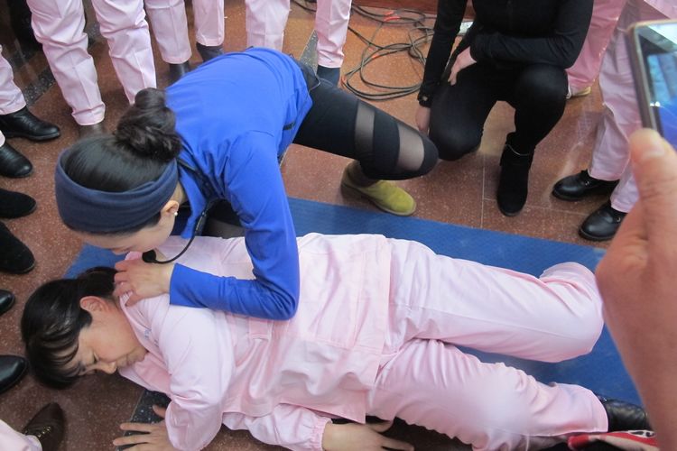 理論學習后在老師的帶領下做形體恢復操