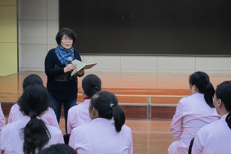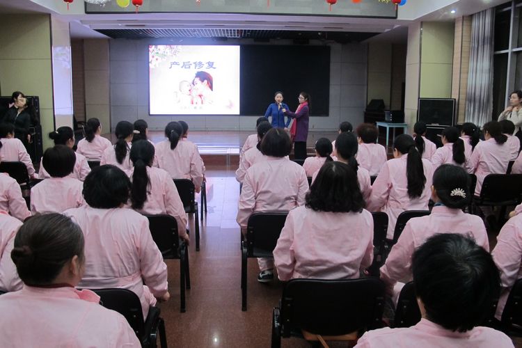 戴娟老師在向月子護理員講授產后形體恢復相關知識