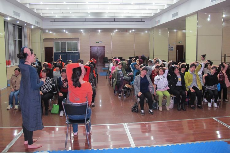 理論學習后在老師的帶領下做形體恢復操