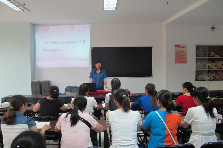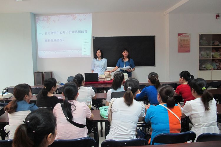 中心老師在為月子護理培訓班學員介紹中心相關情況