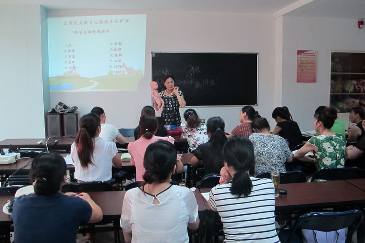 專(zhuān)業(yè)醫(yī)師在為培訓(xùn)班學(xué)員講授新生兒照料及產(chǎn)婦護(hù)理