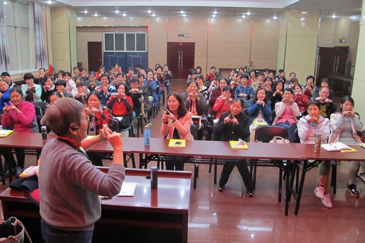 知名早教專家李佩芬老師在和本期培訓的學員上課實景(二)