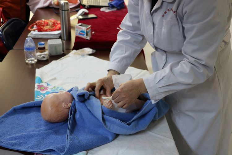培訓老師現場實操新生兒臍帶消毒步驟及注意事項