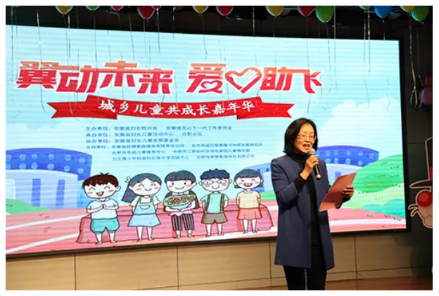 活動伊始,安徽省婦女兒童活動中心姜震主任發表了致辭,姜主任表示自2012年以來,省婦兒中心連續7年開展了“翼動未來,愛心助飛”為主題的系列公益活動,一直將“扶貧助困”作為自己活動的宗旨,希望通過積極而廣泛的社會影響,讓精準扶貧這一項工作落到實處,給孩子們創造更美好的生活學習環境。