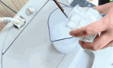 然后在裝滿水的洗衣機中倒入攪拌好的小蘇打水。讓洗衣機運行5分鐘,小蘇打就可以達到洗衣機的每一個死角