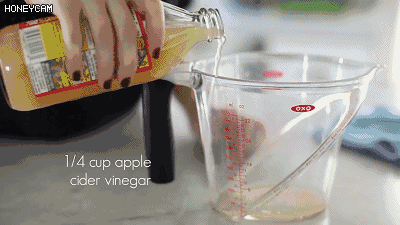將1/4杯的蘋果醋、2杯水和2勺橄欖油充分混合。