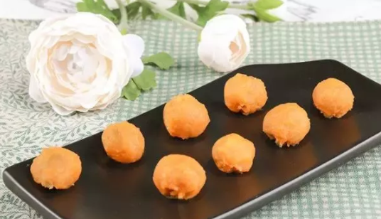 如果紅薯泥質地太稀,可以在捏丸子的過程中加一點面粉。