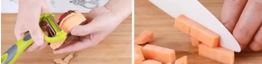 2.將紅薯洗凈、去皮、切小塊備用;
