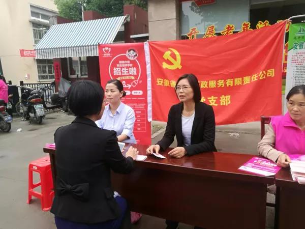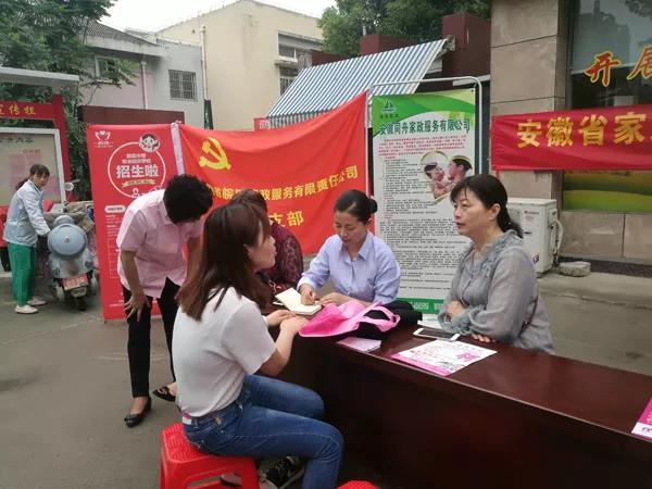 安徽省皖嫂家政服務有限責任公司黨支部組織黨員及優秀員工參加本次活動。在五里拐社區設置咨詢服務臺,免費為群眾發放宣傳物料,為現場的群眾宣傳皖嫂家政發展情況、介紹家政服務員具體工作內容、工資報酬和報名條件,幫助社區就業困難對象。