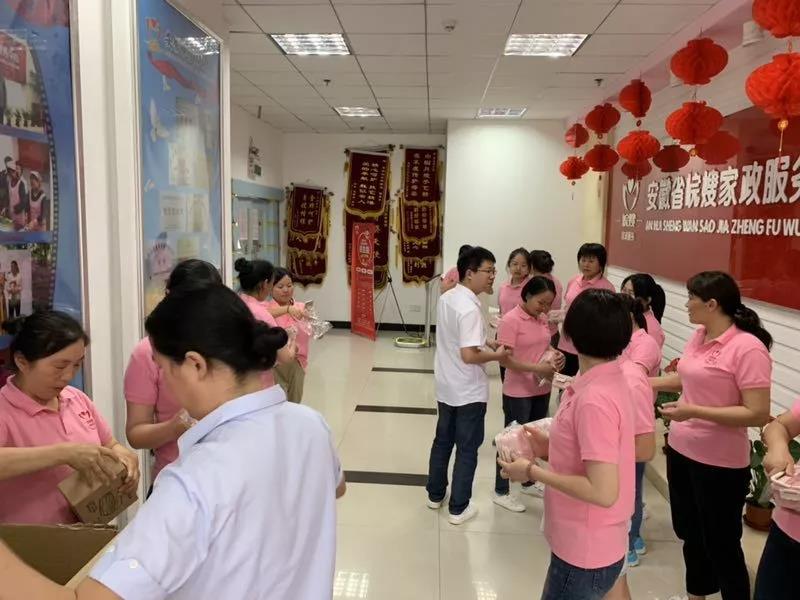 2019年6月4日下午,安徽省皖嫂家政有限責任公司給住家阿姨、月嫂和育嬰師派發統一就餐盒。
