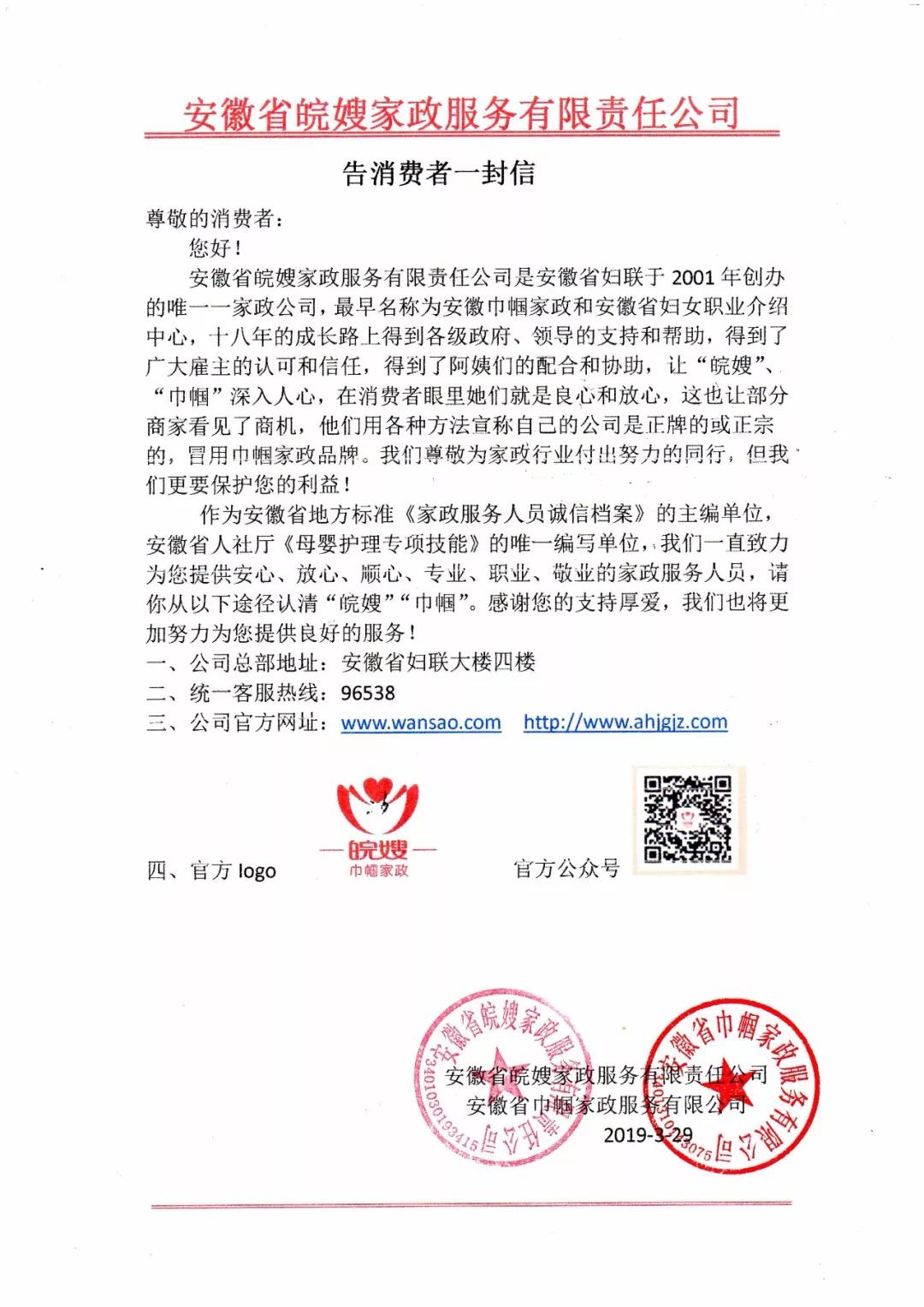 安徽省皖嫂家政服務(wù)有限責(zé)任公司是安徽省婦聯(lián)于2001年創(chuàng)辦的唯一一家家政公司。近期市面上出現(xiàn)了部分商家冒用巾幗家政品牌的家政企業(yè),他們使用各種方法宣傳自己的公司是正牌或正宗的巾幗家政品牌。在此,皖妹想說,家政服務(wù)屬于到家服務(wù)種類,希望大家擦亮眼睛,慎重選擇家政品牌,確保找到一位安心、放心、順心的家政服務(wù)人員。