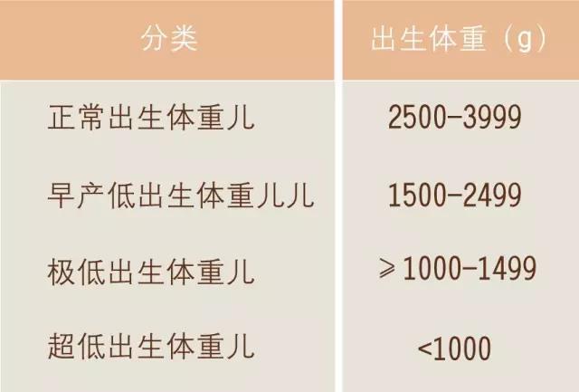 我們可以按出生時(shí)體重將嬰兒分為正常出生體重兒、低出生體重兒、極低出生體重兒、超低出生體重兒和巨大兒。