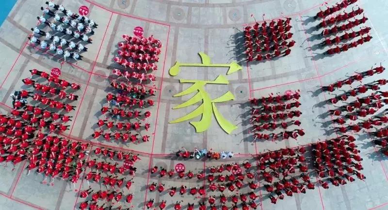 下午4時10分左右, 由廬陽女性代表組成的15個方陣在廬陽區(qū)人民廣場有序排開,從空中俯覽,整個隊伍呈扇形。在扇形中央,一塊約30平方米的金色正楷“家”字,在陽光下熠熠生輝。巾幗代表們手搖國旗,充滿熱情、飽含深情,用歌聲迎慶新中國成立70周年,謳歌偉大時代。