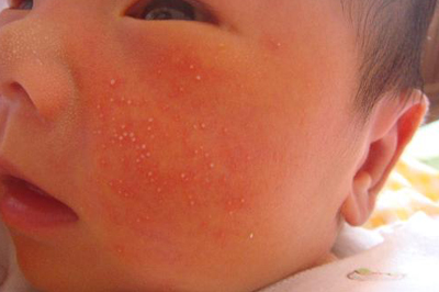 2、接觸了過敏原:對食入物、吸入物或接觸物不耐受或過敏。常見的過敏原有:富含蛋白質的魚蝦、蛋類、牛奶,或者毛織品、花粉、皮草、羽毛,甚至日照、溫度高、寒冷、穿太多等等,都會引發寶寶長濕疹。