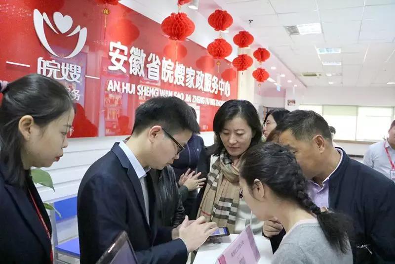 濰坊婦聯代表們參觀了皖嫂的實訓教室、家政、母嬰接待大廳、培訓教室。當代表們走到家政大廳進門處,恰好遇到工作人員在對來登記的阿姨進行“人證合一”的認證工作,工作人員現場向代表們演示了商務部誠信體系大數據平臺操作過程。皖嫂作為安徽省家政服務龍頭及標桿企業,積極響應商務部建設誠信服務體系的布署,率先納入商務部誠信體系云數據平臺,對公司現有從業人員全部納入系統管理,使企業信用“一鍵知底,族譜關聯”滿足客戶與企業之間的信用知情權。